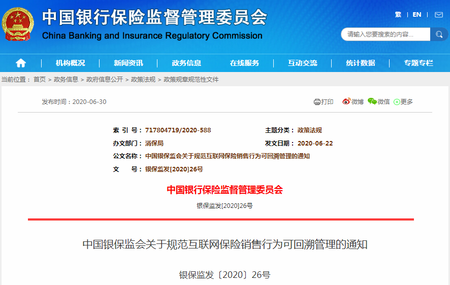 6月(yuè)底銀(yín)保監會(huì)下(xià)發了(le₹∑)《關于規範互聯網保險銷售行(xíng)為(wèi)可(kě)回溯管理(lǐ)的(de)通(tō≤ ng)知(zhī)》(以下(xià)簡稱《通(tōng)知↔¥(zhī)》),立足互聯網新形式與消費(fèi)新行(xíng)為(w®γπèi),結合保險銷售可(kě)回溯管理(lǐ)經驗,以行(xíng↑ )為(wèi)監管為(wèi)抓手,規範互聯網保險銷售行(xíβ₩♠ng)為(wèi)。